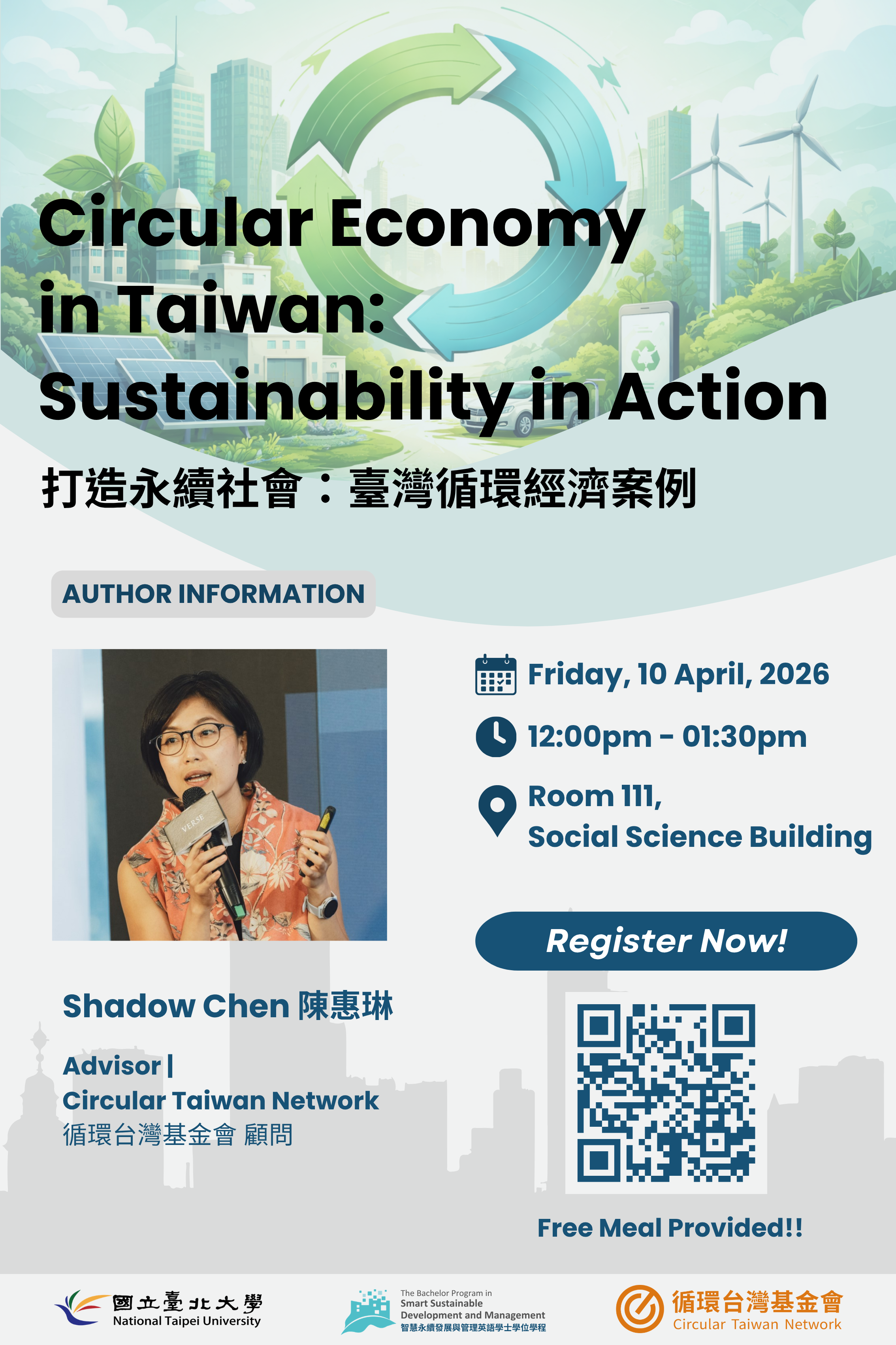 SSDM is honored to invite Ms. Shadow Chen, Advisor of Circular Taiwan Network, to deliver a special lecture on the topic of circular economy and its practical applications.