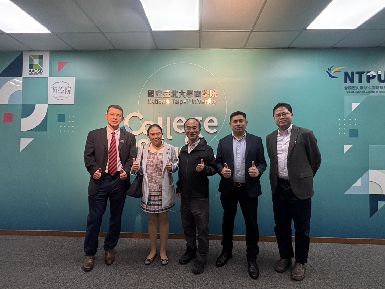 Dr. Andriy Bodnaruk, Associate Dean at the University of Illinois Chicago (UIC), visited National Taipei University (NTPU) on November 25, 2025, for his first on-campus exchange. He was welcomed by a delegation led by Dr. Thijs A. Velema, Dean of the Office of International Affairs, together with Dr. Chi-Jui Huang, Dean of the College of Business; Dr. Chia-Ying Chan, Dean of the International College of Sustainability Innovations (ICSI); Dr. Kuo-Hsun Ma, Associate Dean of ICSI; Dr. Min-Yu Tai, Director of the Fintech and Green Finance Center; Dr. Chun-Yu Lin, Director of AACSB and International Relations; Dr. Chien-Lin Lu, Director of MBA in Finance; and Dr. Haobijam Basanta, College Secretary of ICSI. The visit underscored NTPU’s strong commitment to building a partnership with UIC.
