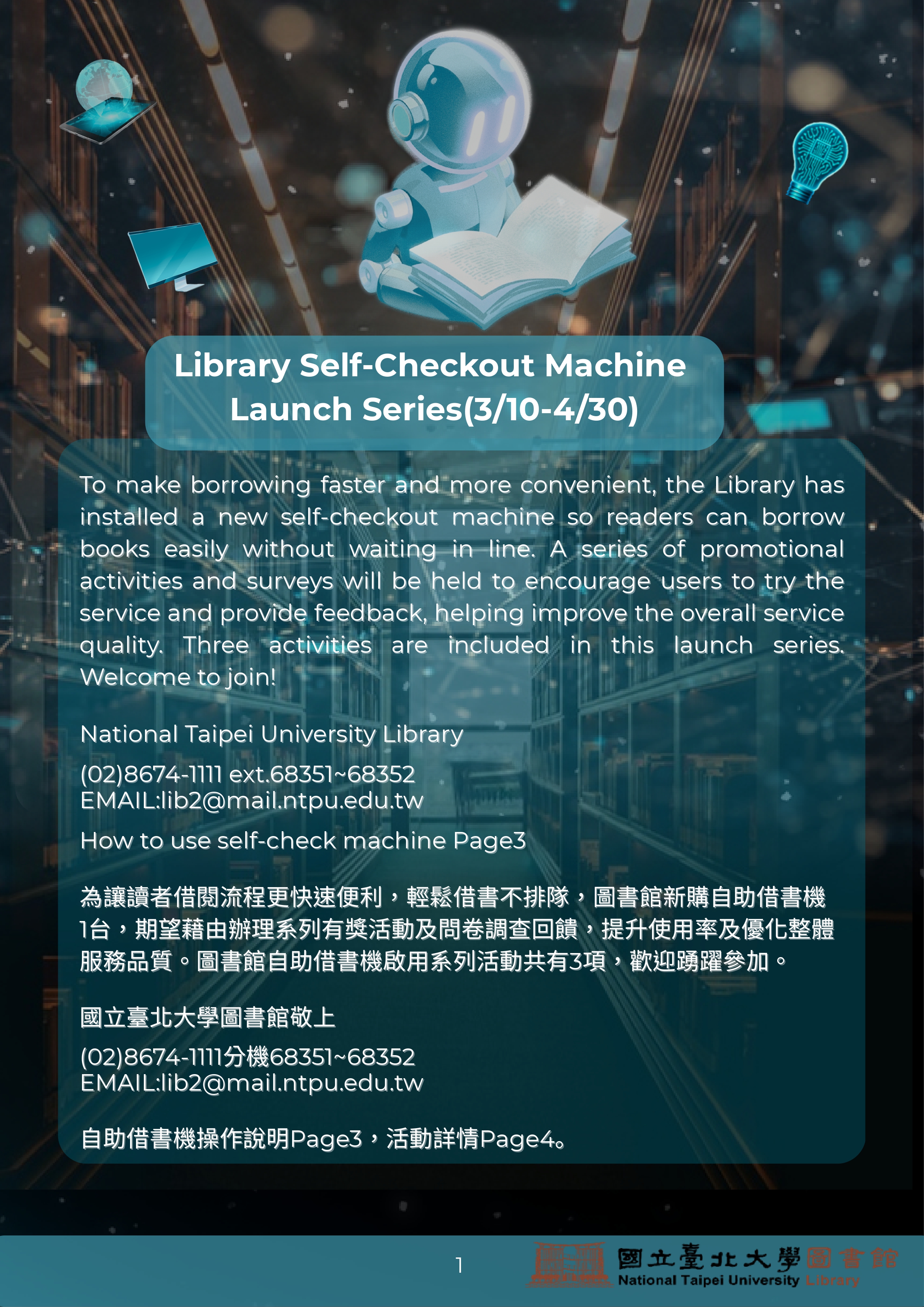 NTPU Library Self-Checkout Machine Launch Series(3/10-4/30)